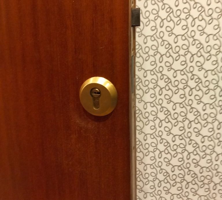 1. Evaluación inicial: Revisamos el estado de tu puerta y cerradura actual.